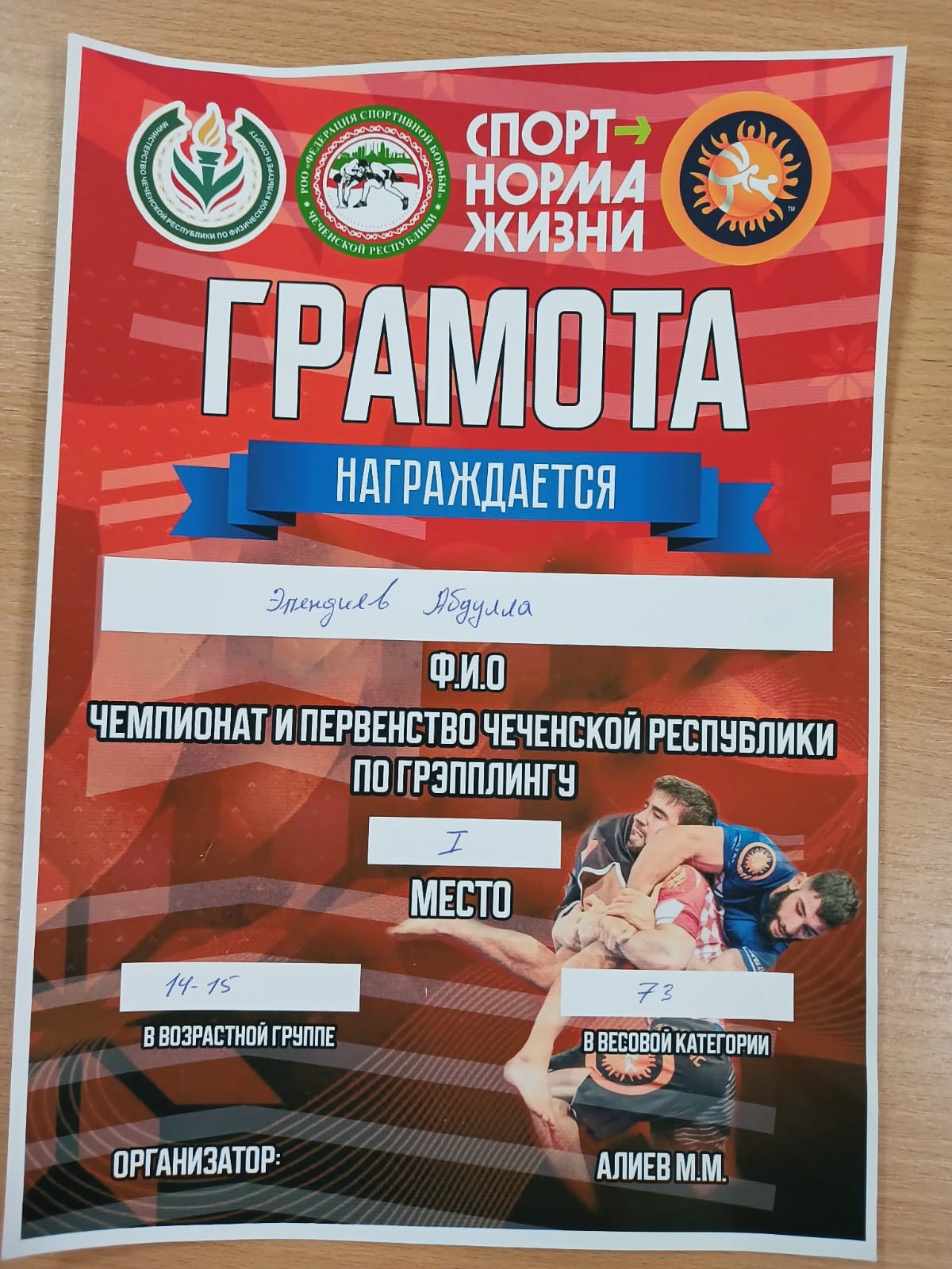Ученик средней школы №29 города Грозного Авторханов Умар, занял три 1-х места в чемпионате мира, который проходил в Санкт-Петербурге, в весовой категории 35 кг и возрастной категории 8-9 лет. И стал трехкратным чемпионом мира по ...