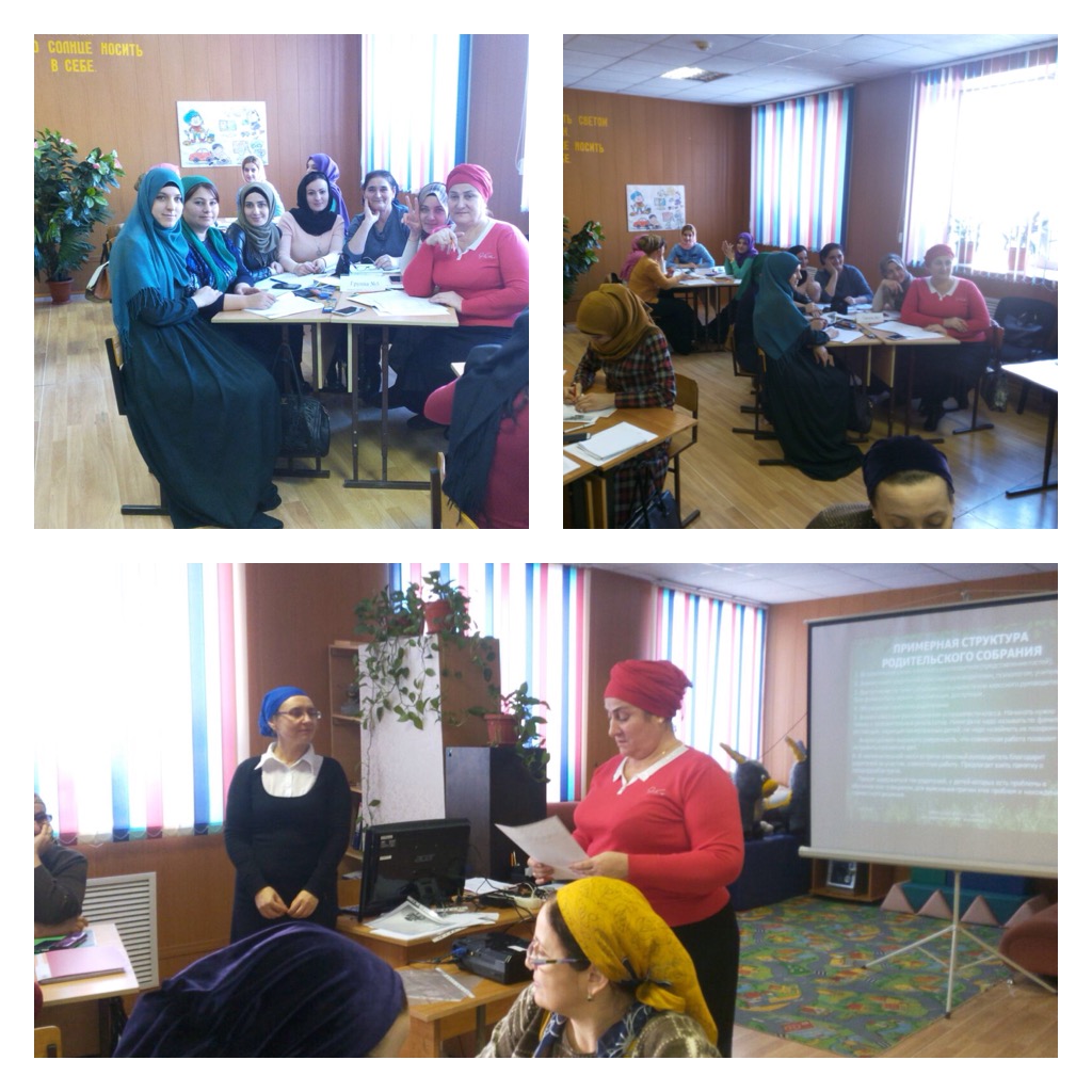 Психолог школы Мусаева Т.И на курсах педагогов-психологов и классных руководителей выпускных классов В ЧИПКРО. Идет защита проекта.