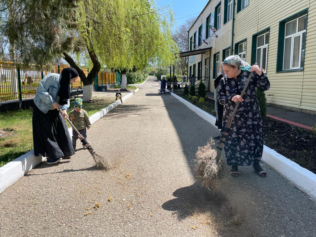Сегодня сотрудники школы провели общегородской субботник. Убирали мусор, белили деревья, привели в порядок газоны.