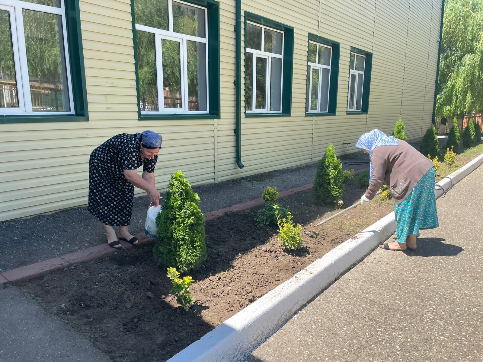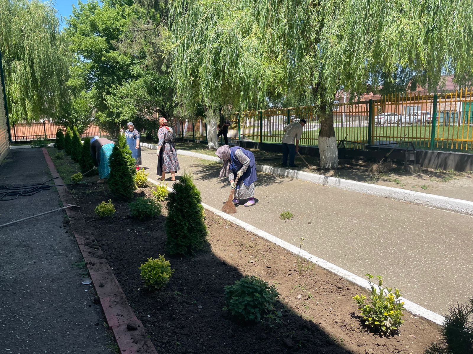 11.06.22г. сотрудники школы провели общегородской субботник. Они убирали мусор, белили деревья, привели в порядок газоны.