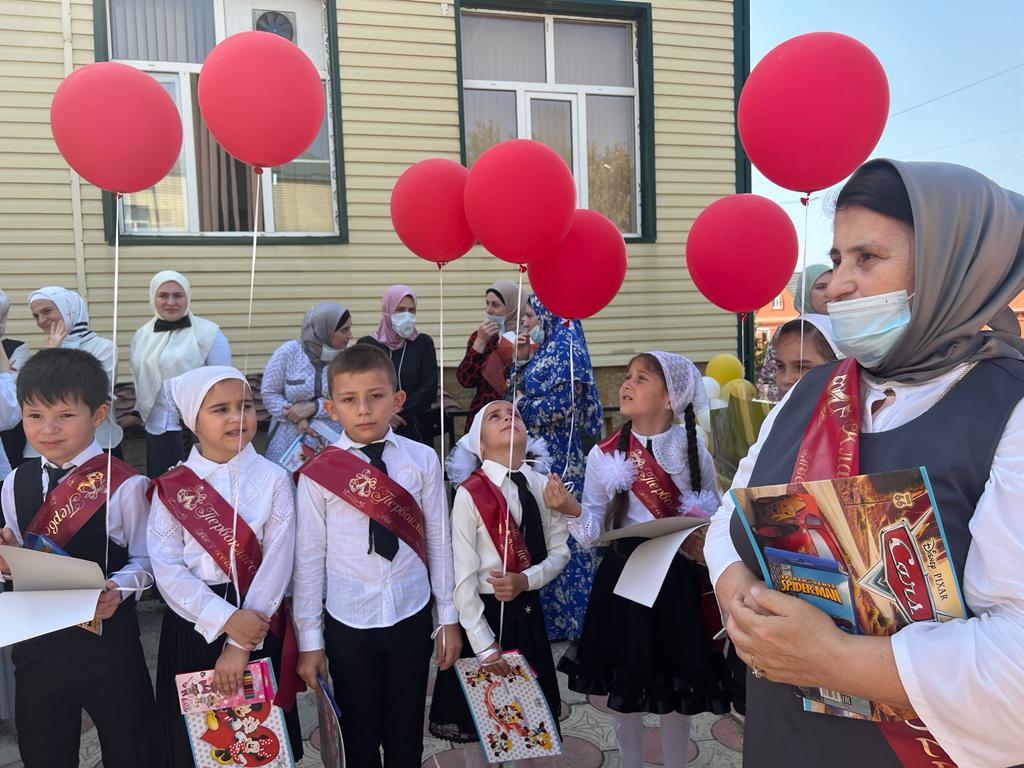 06.09.20221 сентября - всенародный праздник, он дорог всем поколениям. Это особенный день для всех нас, потому что все мы когда-то были детьми. Школа – это особый мир, наполненный событиями и достижениями, радостями и огорчениями.Говорят, как встретишь новый учебный год, так и проводишь. В нашей школе учебный год начался ярко, интересно и празднично. Ведущие пригласили на линейку 49 первоклассников, которых встретили очень радушно и тепло их первые учителяДиректор школы Арсамерзуева Фатима Абдулаевна поздравила всех присутствующих с праздником. Она отметила, с какими результатами закончился 2021-2022 учебный год, поблагодарила родителей за их участие в жизни школы.