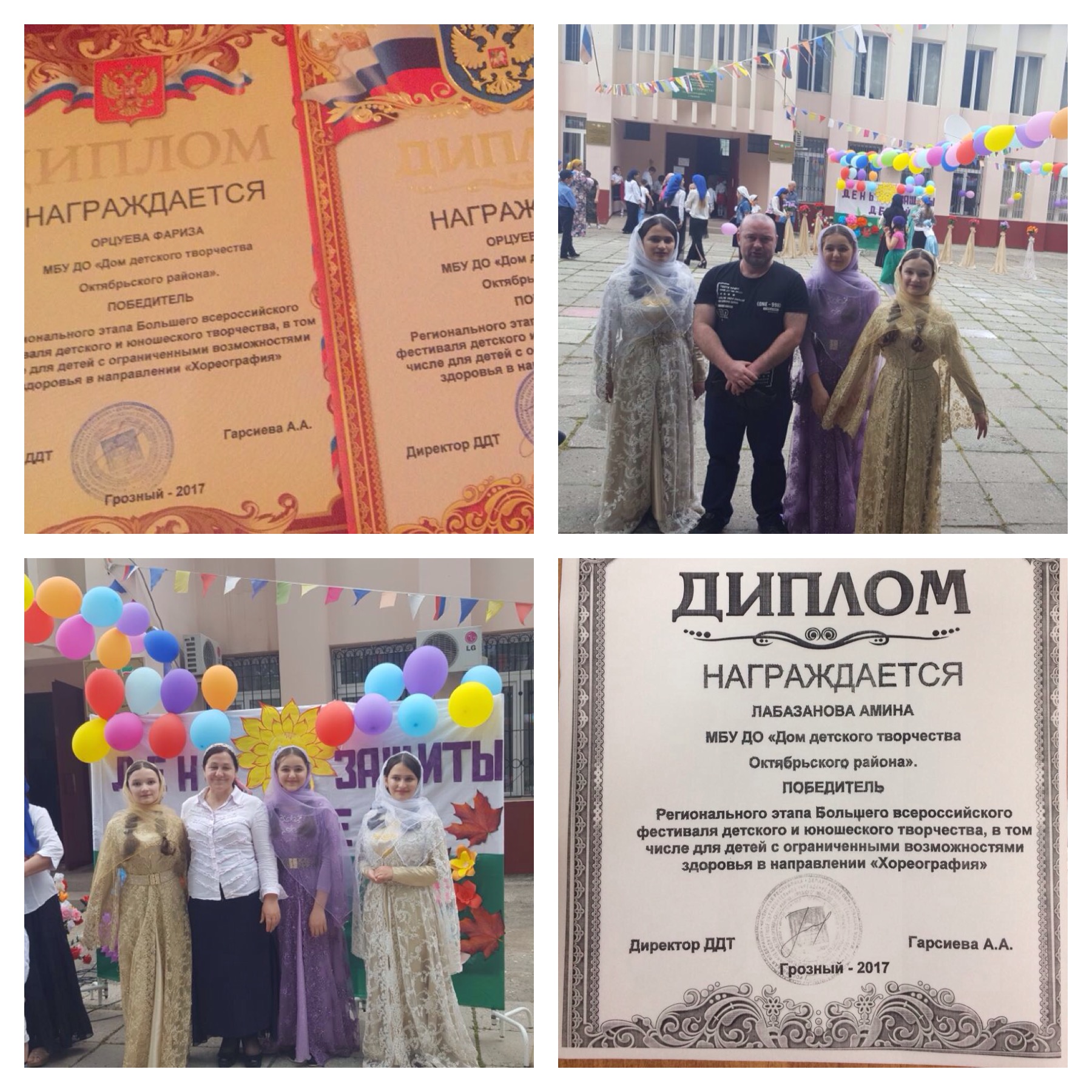 03.06.2017Победители регионального этапа Большого Всероссийского фестиваля детского и юношеского творчества, в том числе для детей с ограниченными возможностями здоровья в направлении "Хореография" Орцуева Райман,Лабазанова Амина,Орцуева Фариза.