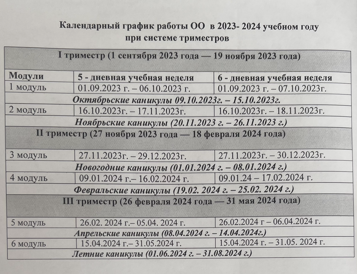 Администрация МБОУ "СОШ №29" г.Грозного уведомляет Вас о преходе с 1 сентября 2023 г. школы на обучение по триметсрам.