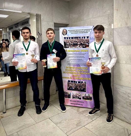 Финал юбилейного XX Всероссийского конкурса научно-исследовательских работ имени Д.И. Менделеева, в котором приняли участие около 1100 учащихся представляющих различные регионы России проходил в Москве, где единственными представителями из Чеченской Республики оказались наши ученики Рустам Авдаев, Магомед-Эмин Мусханов и Халиф Садуев.