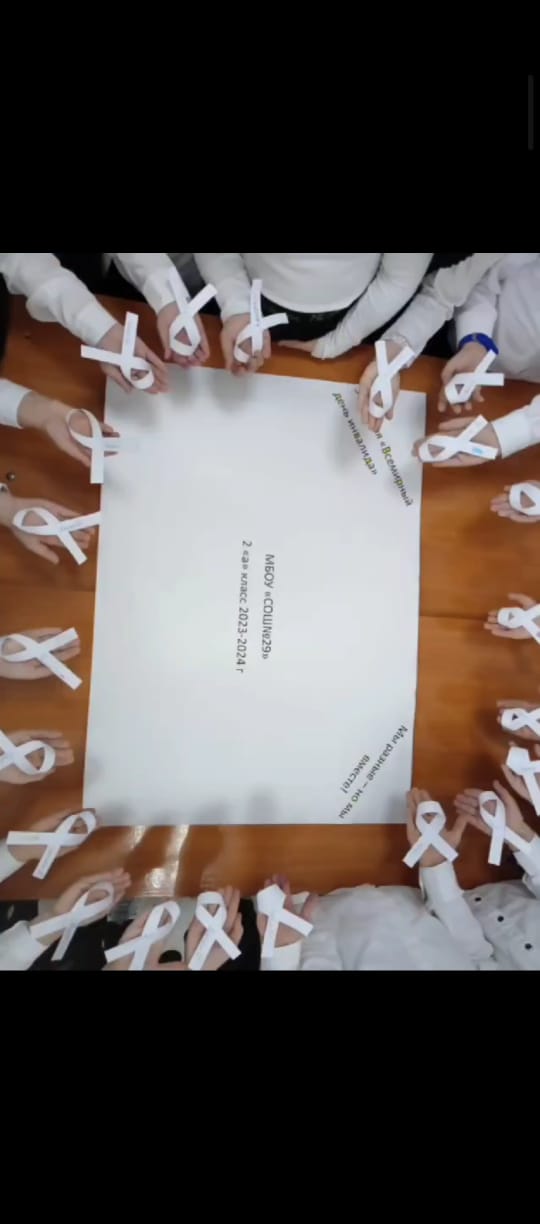 01.12.20231 декабря в МБОУ "СОШ29" г. Грозного прошла акция "Белая ленточка", приуроченная к Международному дню инвалидов. " Белая ленточка " - это напоминание каждому человеку о главном в жизни- помогать тем, кто нуждается в помощи! Педагог- психолог, учащиеся 10б класса приготовили для младших школьников белые ленты как символ милосердия и доброты, на которых дети писали свои имена, призывая всех быть внимательными, отзывчивыми, неравнодушными друг к другу. Проявление собственного милосердия и сочувствия делает людей добрее и сильнее духом.