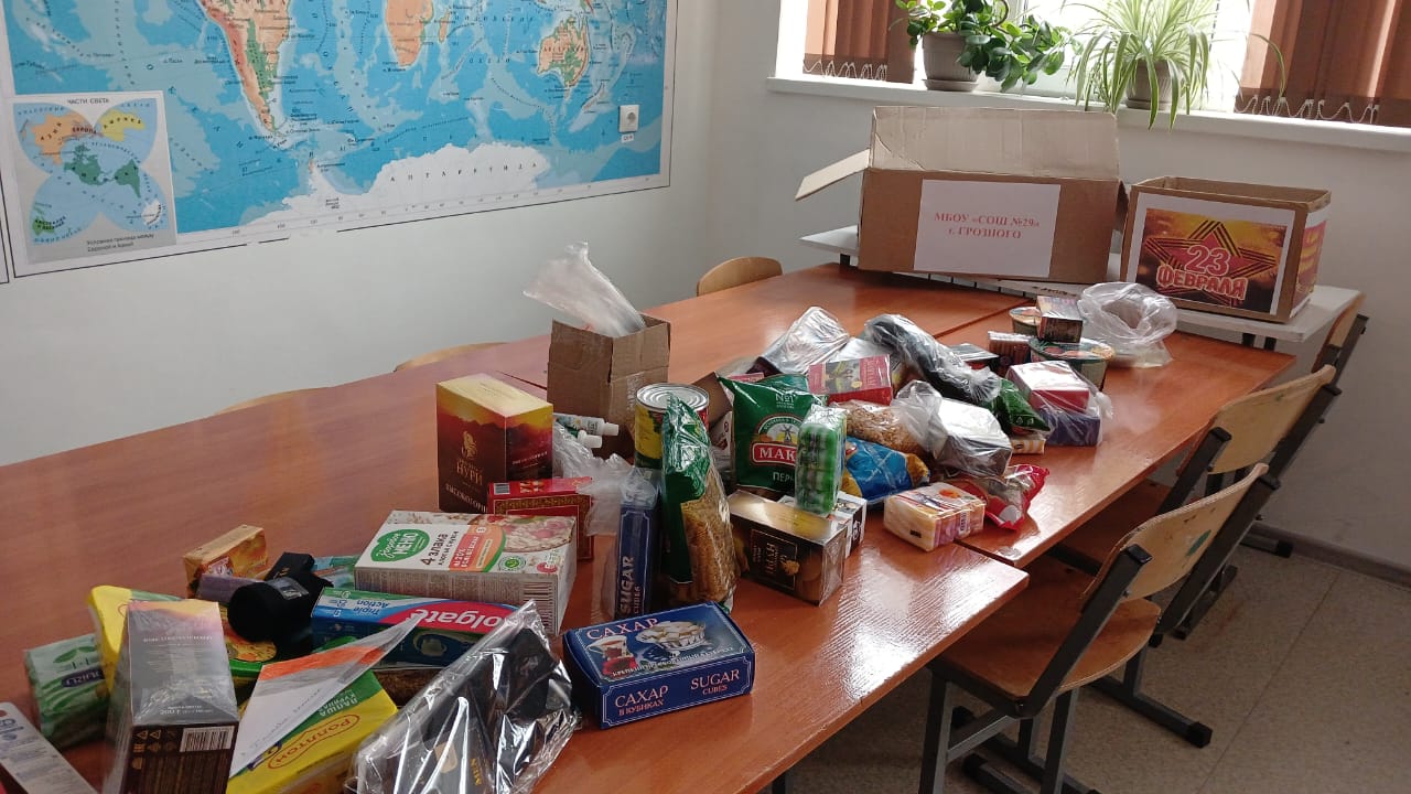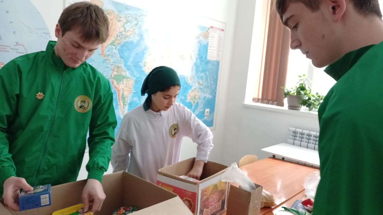 Вместе со всеми были сформированы подарки, которые предназначались для военнослужащих участвующих в специальной военной операции и проходящих срочную службу в рядах Российской армии. Каждый класс принял участие в акции «Собери посылку солдату». Они проявили заботу о тех, кто стоит на страже родной земли. Были собраны сладости: печенье, сгущенное молоко, конфеты, консервы, тушенки и банные принадлежности.