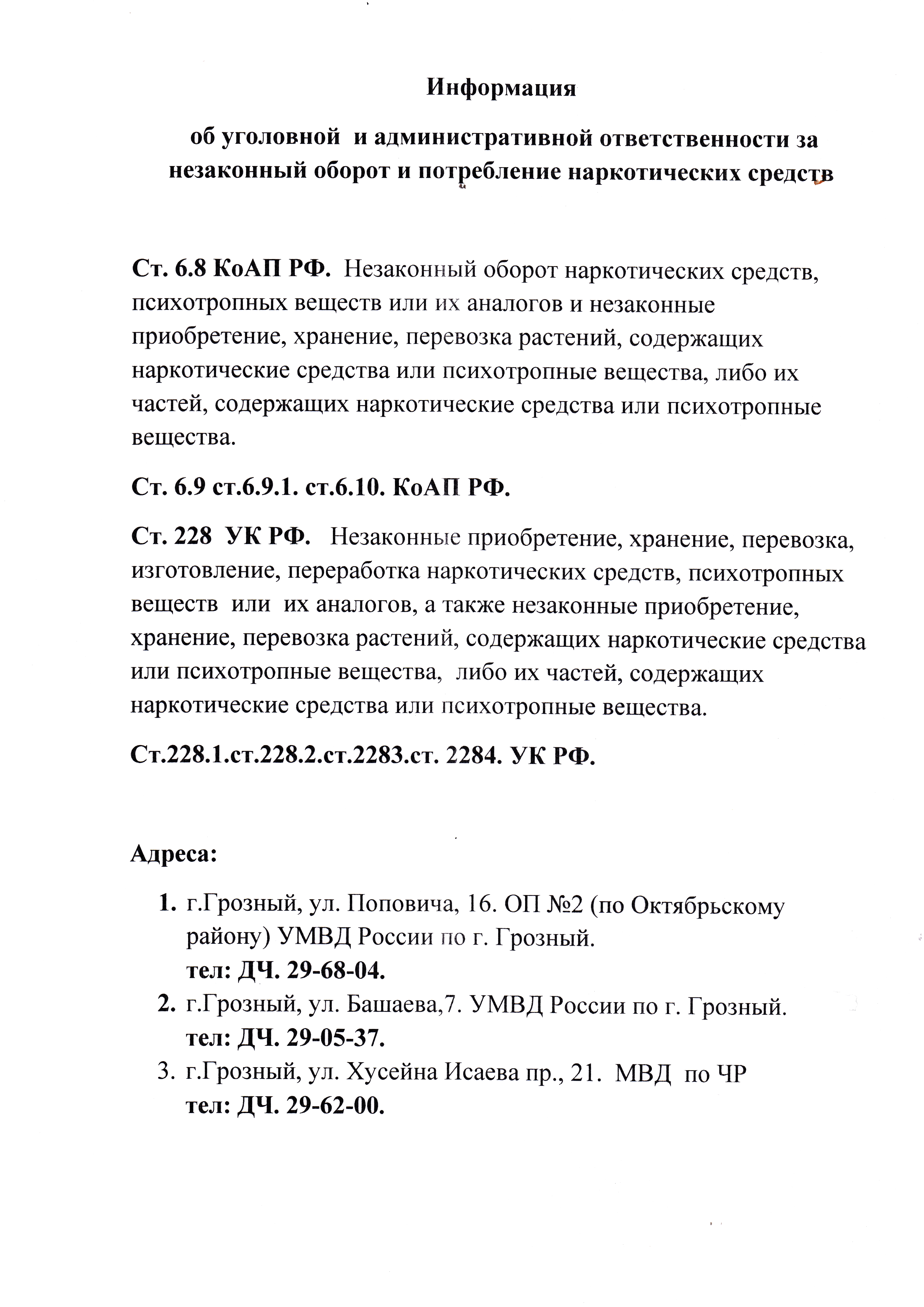 об уголовной и административной ответственности за незаконный оборот и потребление наркотических средств