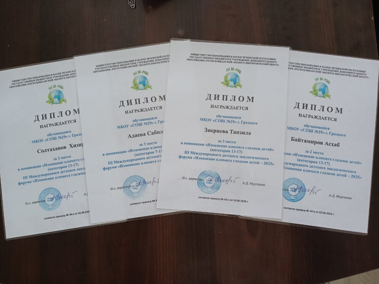 24.07.2025Обучающиеся средней школы №29 города Грозного в количестве четырех человек стали призерами в региональном этапе Международного конкурса рисунков «Изменение климата глазами детей».