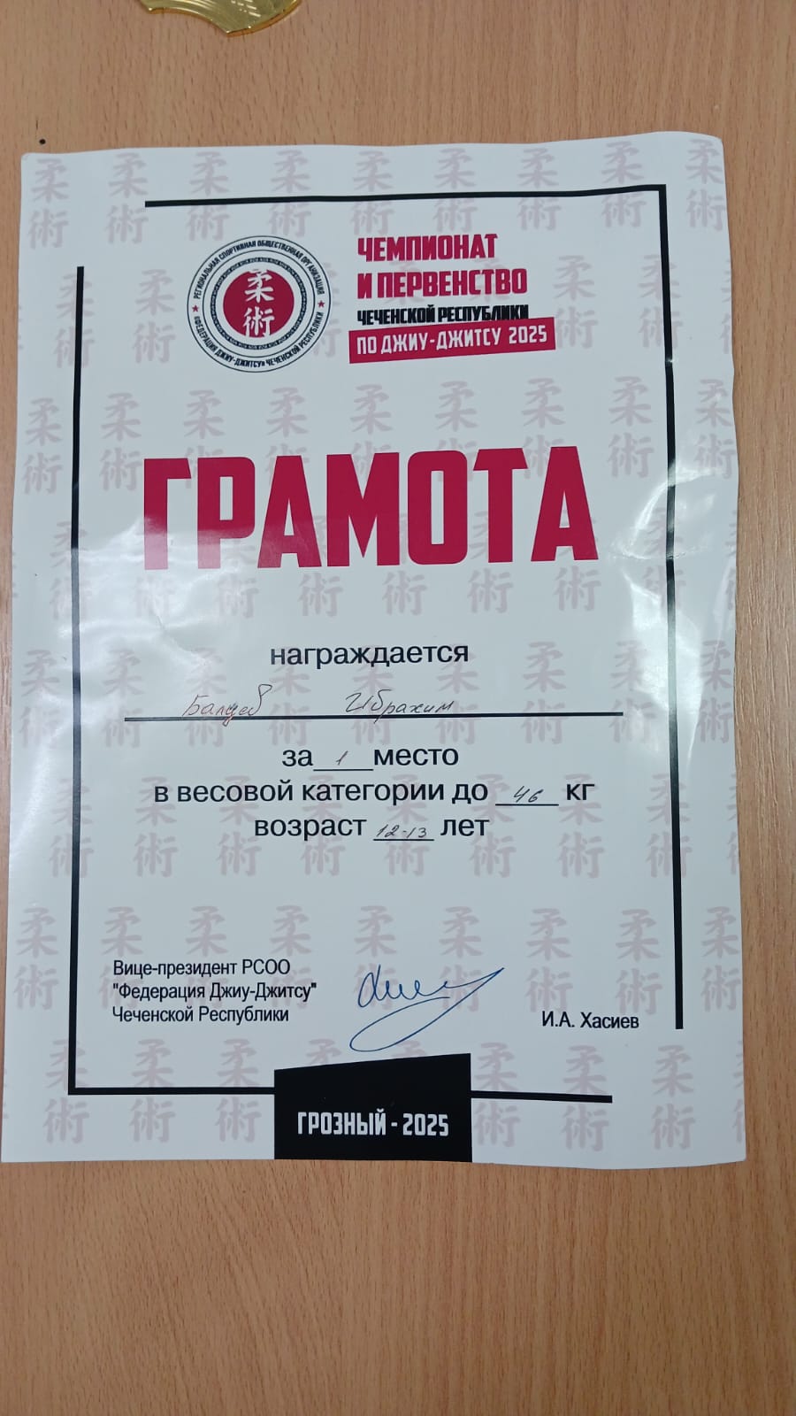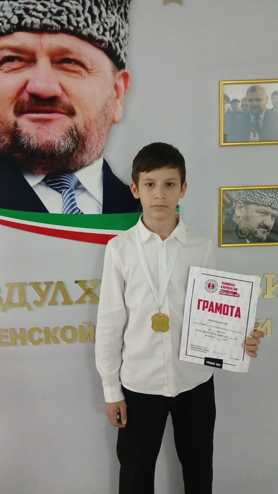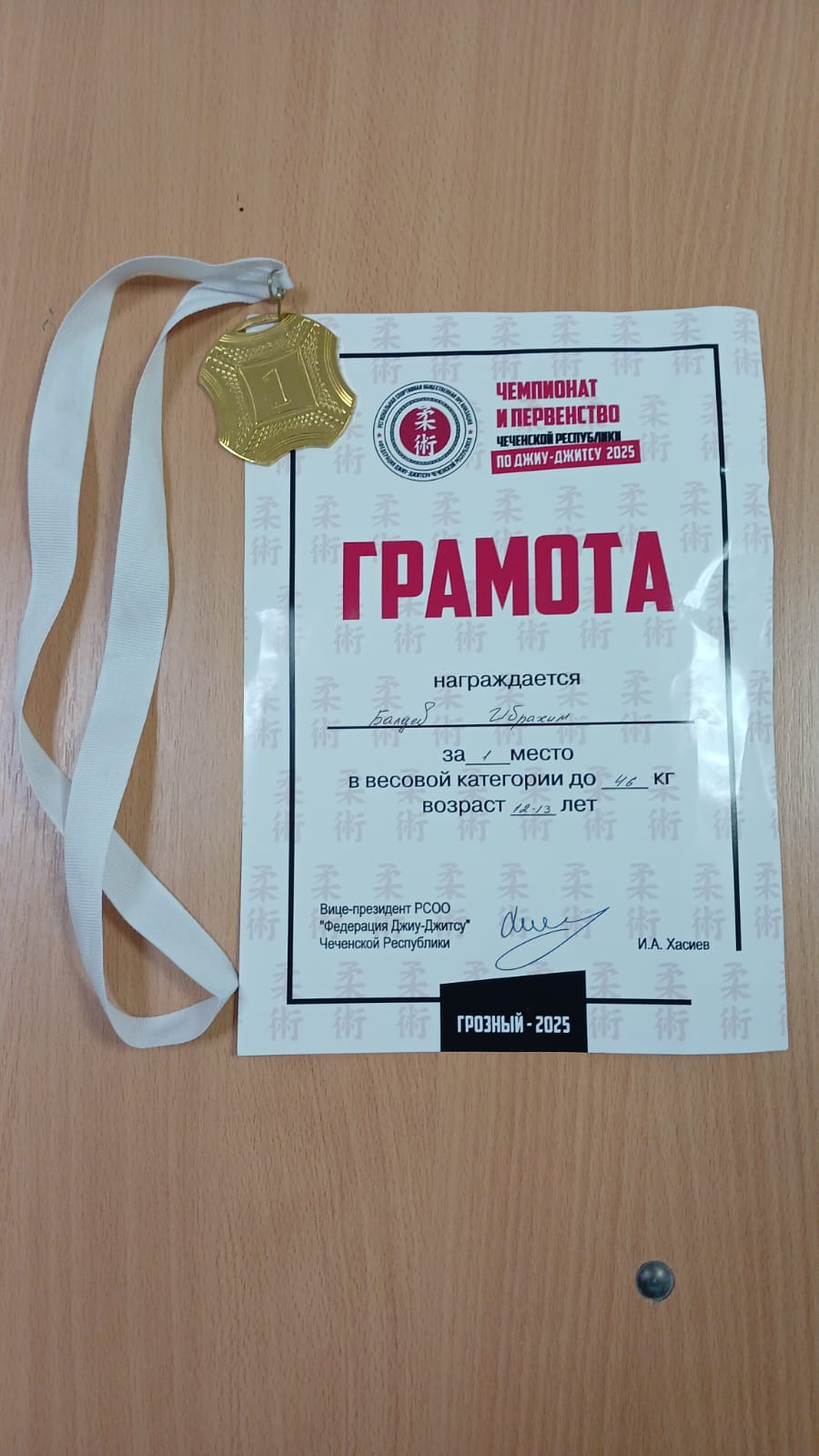 24.11.2025Ученик средней школы №29 города Грозного Балуев Ибрахим, занял 1-е место в чемпионате и первенстве Чеченской Республики по бразильскому джиу-джитсу в кимоно в городе Грозном.