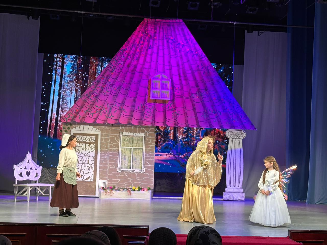 Показ спектакля «Хрустальная туфелька» был по мотивам сказки Шарля Перро. Постановку представили на чеченском языке. Классическая история о Золушке бала рассказана через яркие костюмы, музыку и декорации. На сцене театра дети увидели историю волшебства и надежды, где каждый зритель, от мала до велика, поверил в чудо и почувствовал силу добра.