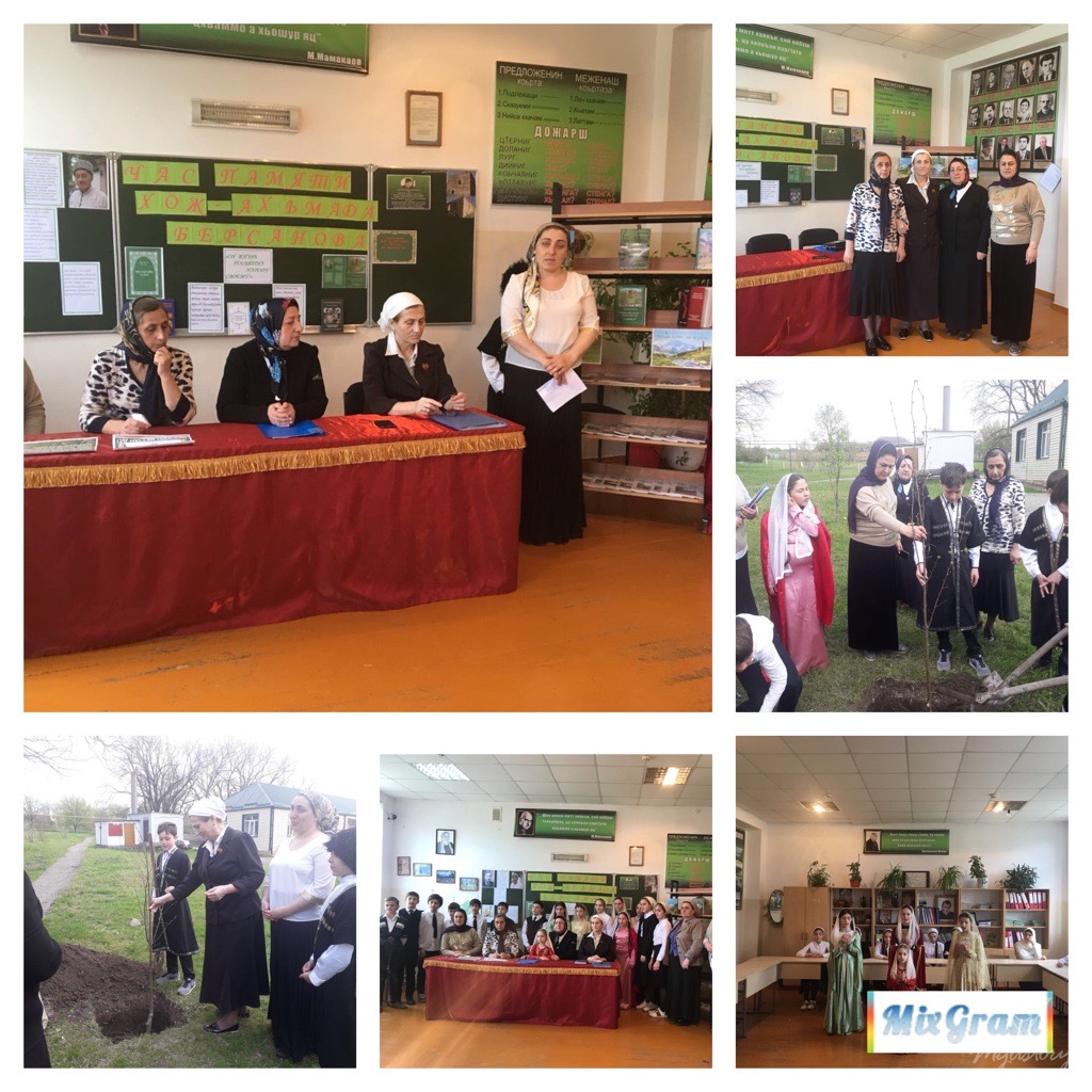 24.04.2018Час памяти Хож-Ахмеда Берсанова провели члены кружка "Даймохк" в школе.Были приглашены дочери писателя Зура, Зулай, Тамара.Много теплых слов было сказано о нем, о его книге"Г1ллакхийн хазна-ирсан некъаш" Дочь писателя Тамара подарила школьной библиотеке книги.В школьном саду посадили аллею Памяти совместно членами семьи Берсановых. Час Памяти- это коллективно-творческое дело кл.рук.Орцуевой Р.И.,библиотекаря Абдулвагаповой М. М и вожатой Абдулвагаповой Марем М.